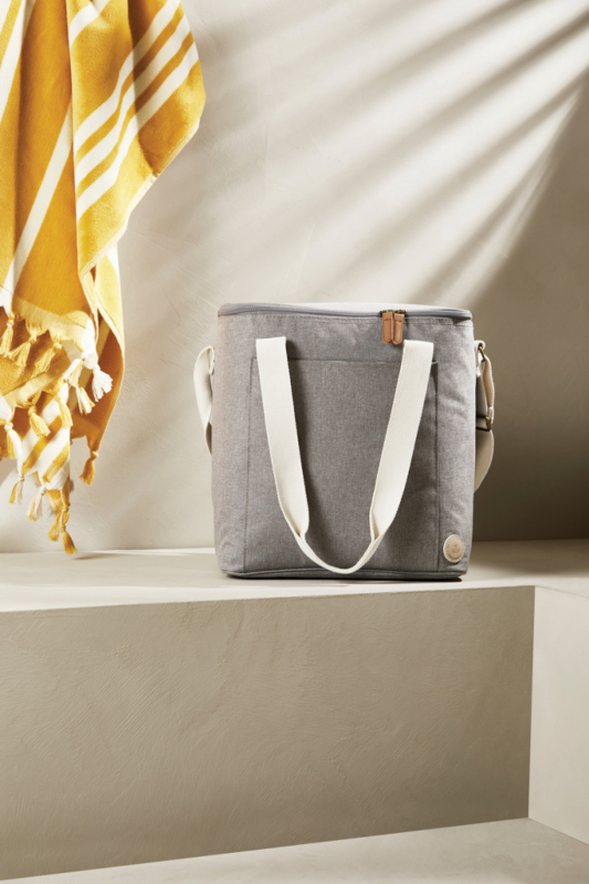 S touto módní chladicí taškou bude víkendový výlet rozhodně snadnější. Navíc je praktická a snadno se čistí. Chladicí taška je vyrobena z melanžové tkaniny doplněné o PU detaily, díky nimž je stejně módní jako běžná taška. Na přední straně tašky je kapsa, kam si můžete uložit nezbytnosti. Můžete ji nosit v ruce nebo přes rameno.