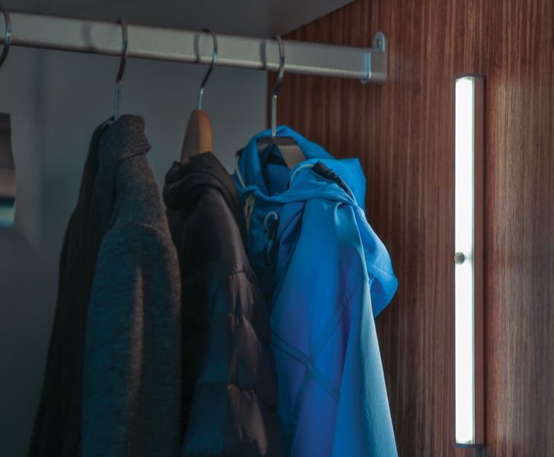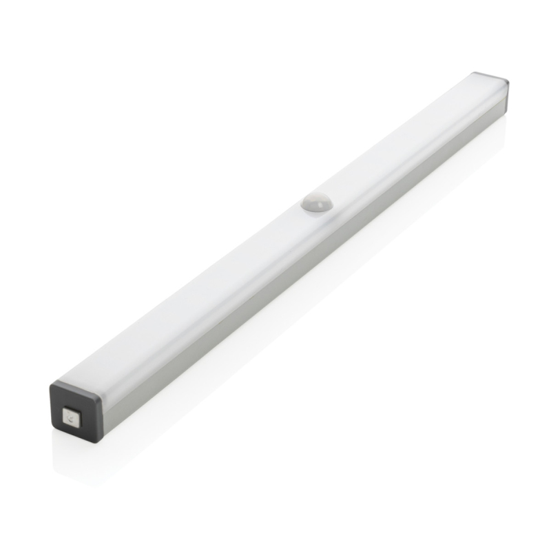 Hliníkové LED světlo (20 LED, 30 lm) s pohybovým senzorem a magnetickým podstavcem pro snadné připevnění ke kovovým plochám. Včetně 2 magnetů s lepící částí pro umístění na nekovové plochy. 2 režimy: stálé zapnutí a zapnutí při detekci pohybu s automatickým vypnutím po 35 sekundách bez detekovaného pohybu. Detekce až na vzdálenost 3m. Lithiová baterie s kapacitou 500 mAh pro svícení po dobu až 3,5h. Včetně micro USB kabelu z TPE (bez PVC) pro dobíjení.