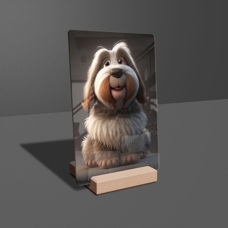 Dárková deska s digitální grafikou psa z akrylového skla.