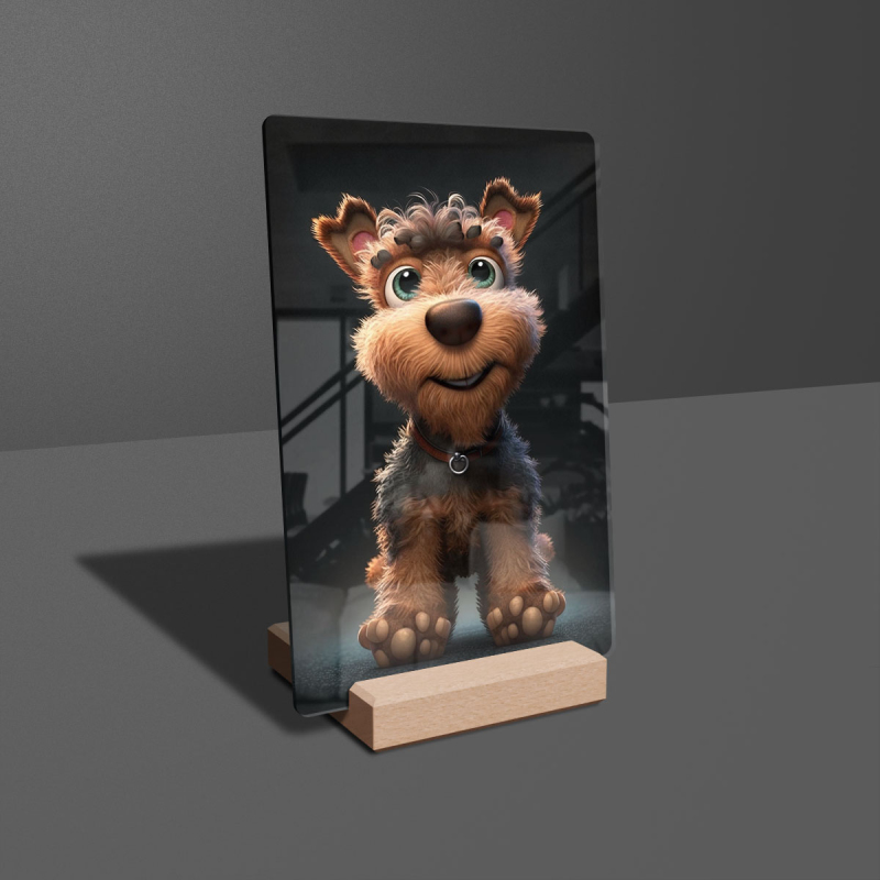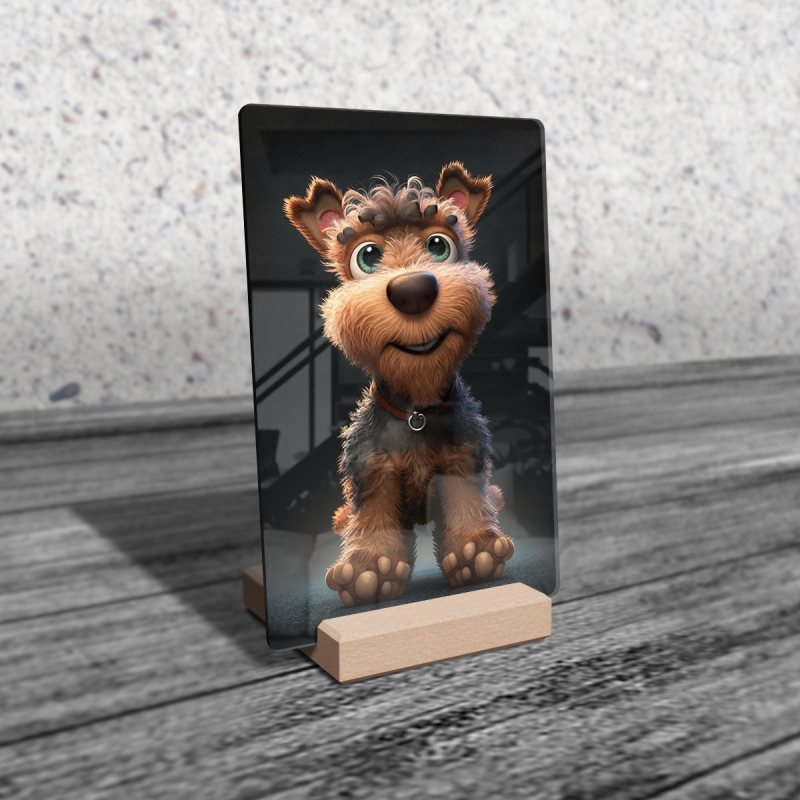 Dárková deska s digitální grafikou psa z akrylového skla.