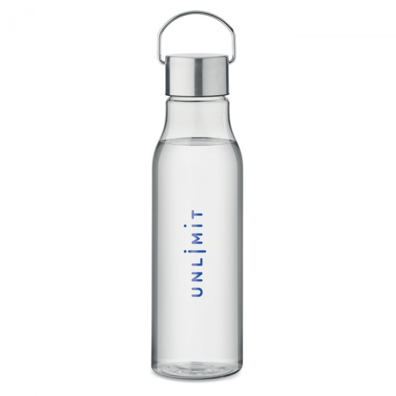 Láhev na pití z RPET. Neobsahuje BPA. Uzávěr z nerezové oceli s držadlem. Objem: 600 ml.