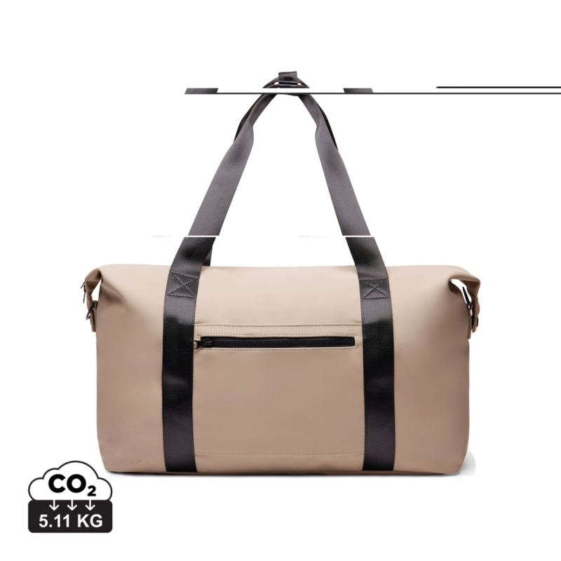 Cestovní víkendová taška vyrobená z částečně recyklovaného polyesteru s certifikací RCS a elegantním PU povrchem. Navržena tak, aby se do ní vešlo vše, co potřebujete na 1-2 noci. Tašku jednoduše upevníte na kufr pomocí chytré kapsy na zip 2 v 1. Je vybavena jak pohodlnými popruhy pro nošení v ruce, tak odnímatelným nastavitelným ramenním popruhem. Uvnitř menší kapsa na zip pro vaše nezbytnosti. Certifikace RCS zaručuje, že celý dodavatelský řetězec recyklovaných materiálů je certifikován. Celkový recyklovaný obsah vychází z celkové hmotnosti výrobku. Tento výrobek obsahuje 20 % recyklovaného polyesteru s certifikací RCS.
