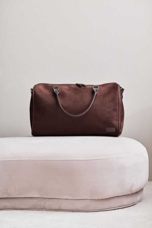 Prostorná víkendová taška, která je ideální na kratší cesty nebo výlety. Taška má nadčasový a klasický design v imitaci semiše a je zdobena mosaznými detaily. Skvělý a snadný společník na cesty pro dny, kdy jste neustále v pohybu.