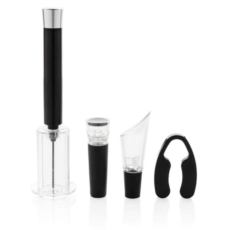Ideální sada pro milovníky vín. Obsahuje tlakovou vývrtku, ořezávátko folie, zátku s vakuovou pumpou a dekantovací nálevku. Baleno v luxusní dárkové tubě.
