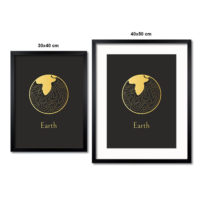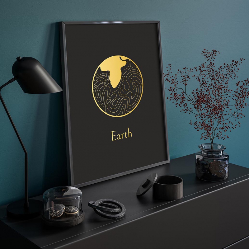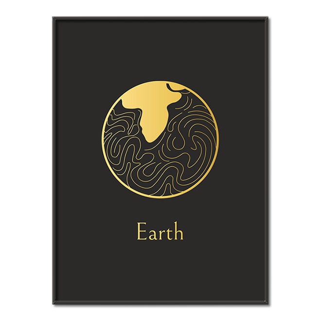 Vintage Země s černým pozadím 3D Zlatý Plakát