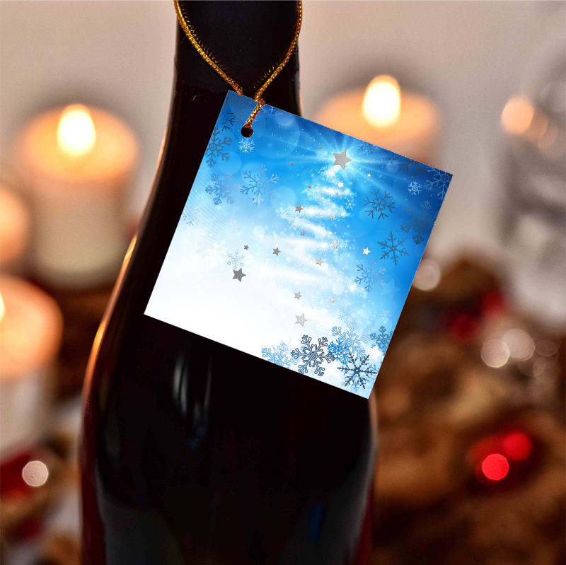 Visačky na víno s vánočním motivem ve 2 rozměrech.