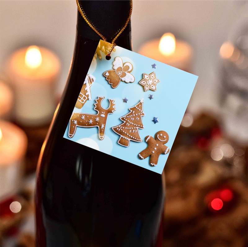 Visačky na víno s vánočním motivem ve 2 rozměrech.