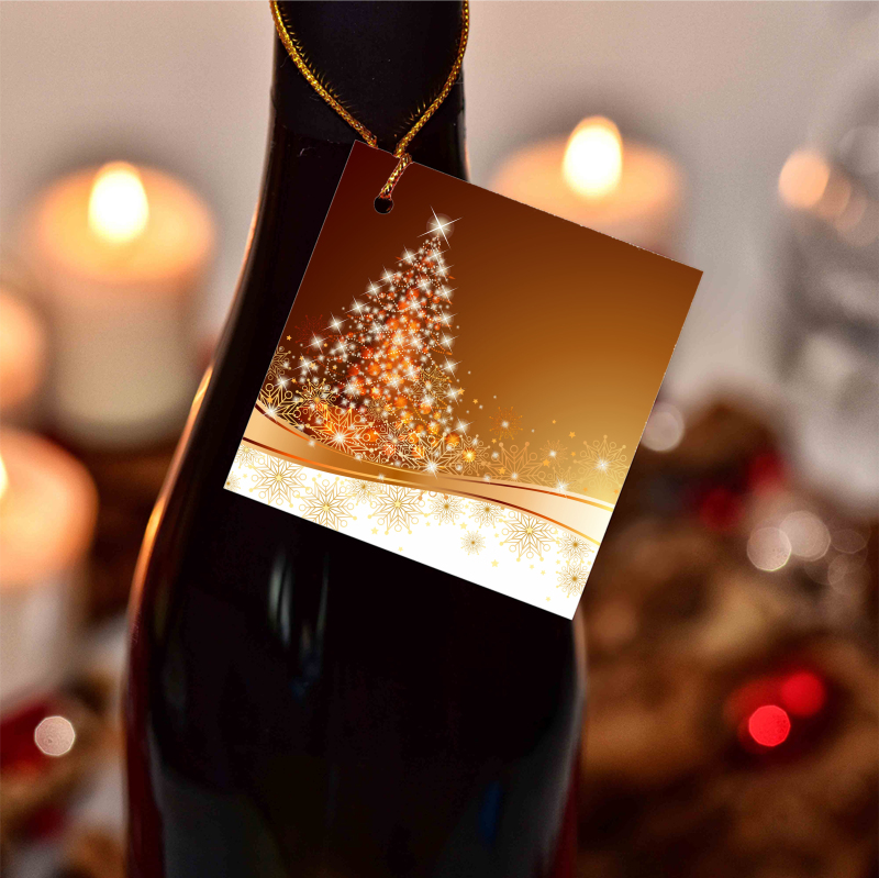Visačky na víno s vánočním motivem ve 2 rozměrech.