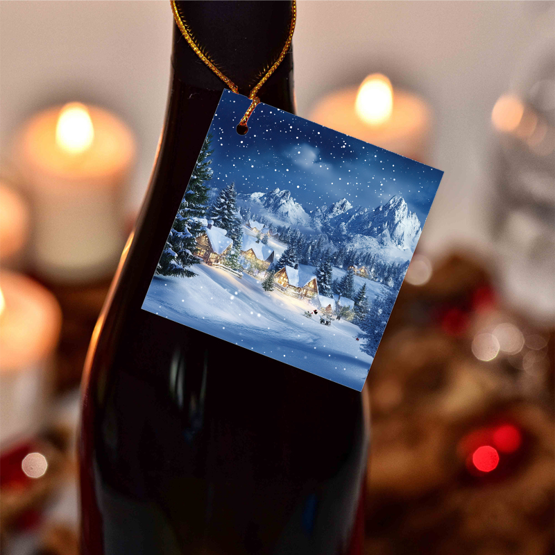 Visačky na víno s vánočním motivem ve 2 rozměrech.