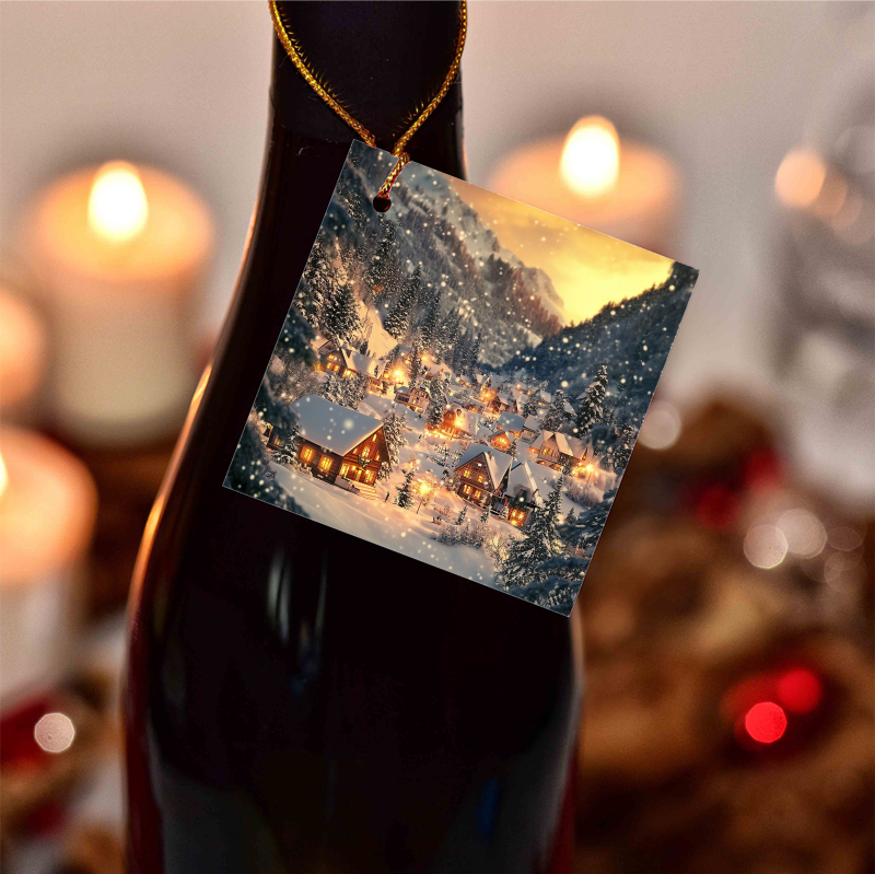 Visačky na víno s vánočním motivem ve 2 rozměrech.
