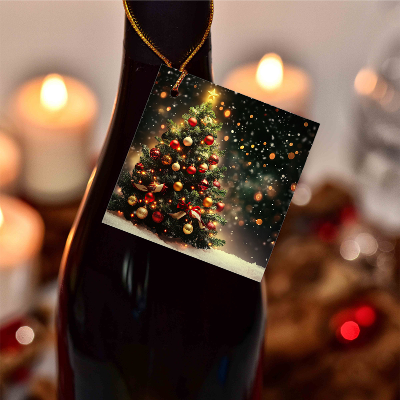 Visačky na víno s vánočním motivem ve 2 rozměrech.