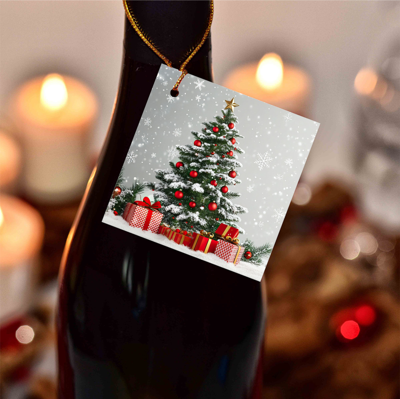 Visačky na víno s vánočním motivem ve 2 rozměrech.