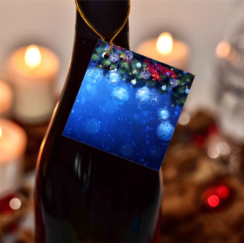 Visačky na víno s vánočním motivem ve 2 rozměrech.