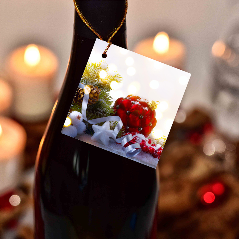 Visačky na víno s vánočním motivem ve 2 rozměrech.