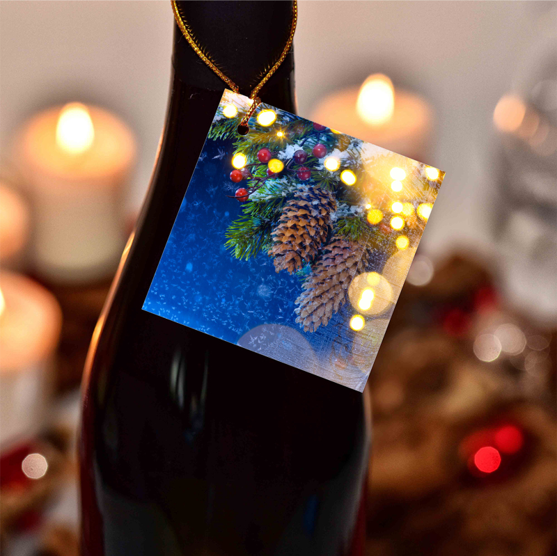 Visačky na víno s vánočním motivem ve 2 rozměrech.