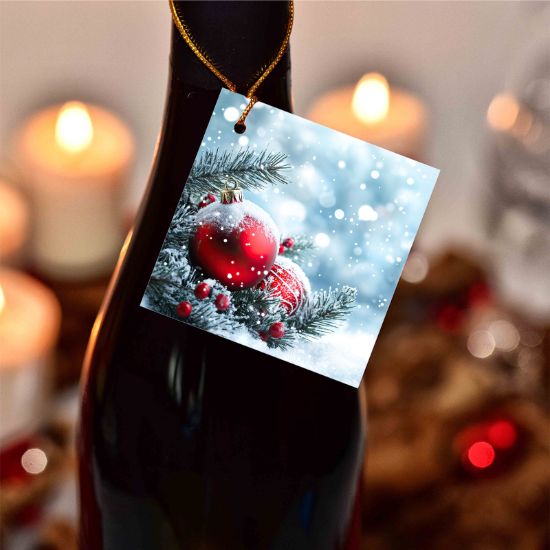 Visačky na víno s vánočním motivem ve 2 rozměrech.