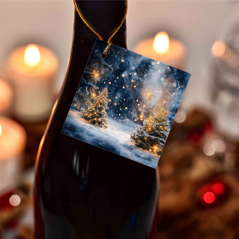 Visačky na víno s vánočním motivem ve 2 rozměrech.