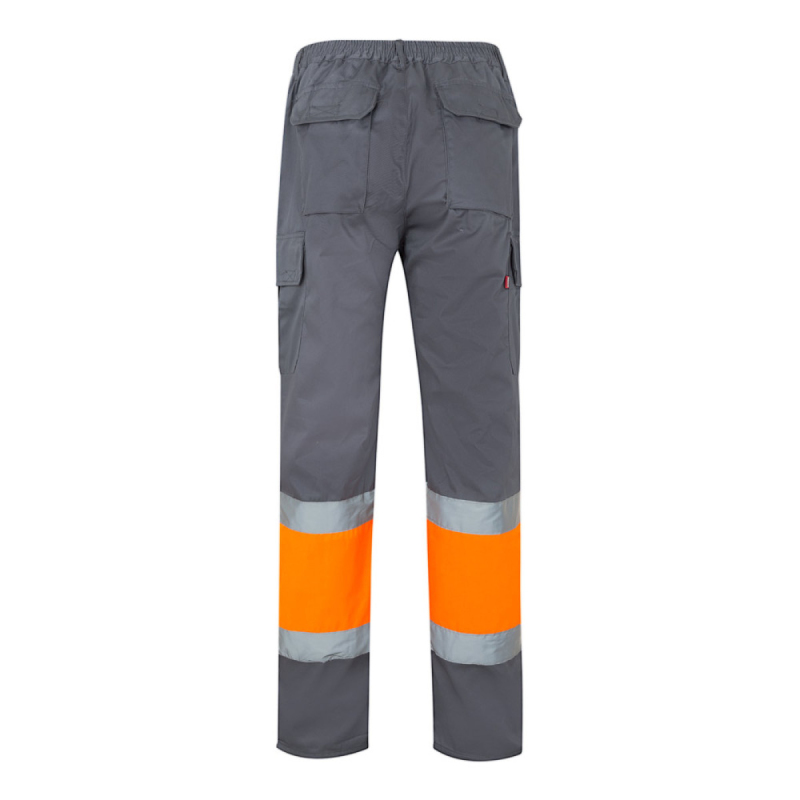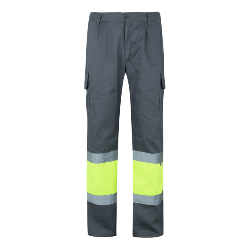 Dvoubarevné keprové kalhoty (210 g/m²), podšité, s mnoha kapsami, z bavlny (20 %) a polyesteru (80 %). S elastickým pasem, s reflexními pruhy na spodní části nohavic. Obsahuje šest kapes (2 Francouzské kapsy, 2 boční měchové kapsy a 2 zadní kapsy)." Velikost: S, M, L, XL, 2XL, 3XL