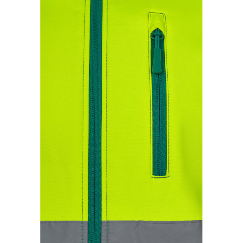 "Dvoubarevná softshellová bunda (280g/m²), s fleecovou podšívkou a TPU membránou, z polyesteru (96%) a elastanu (4%). Třívrstvá tkanina, s obráceným centrálním zipem v kontrastní barvě, vnitřní léga otočená na top, nastavitelné manžety se suchým zipem na hrudi a rukávech Obsahuje pět kapes: 3 kapsy na zip a 2 vnitřní kapsy." Velikost: 4XL, 5XL