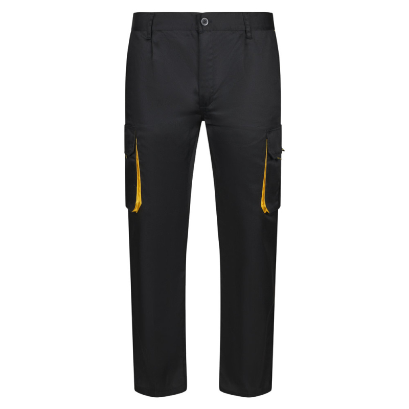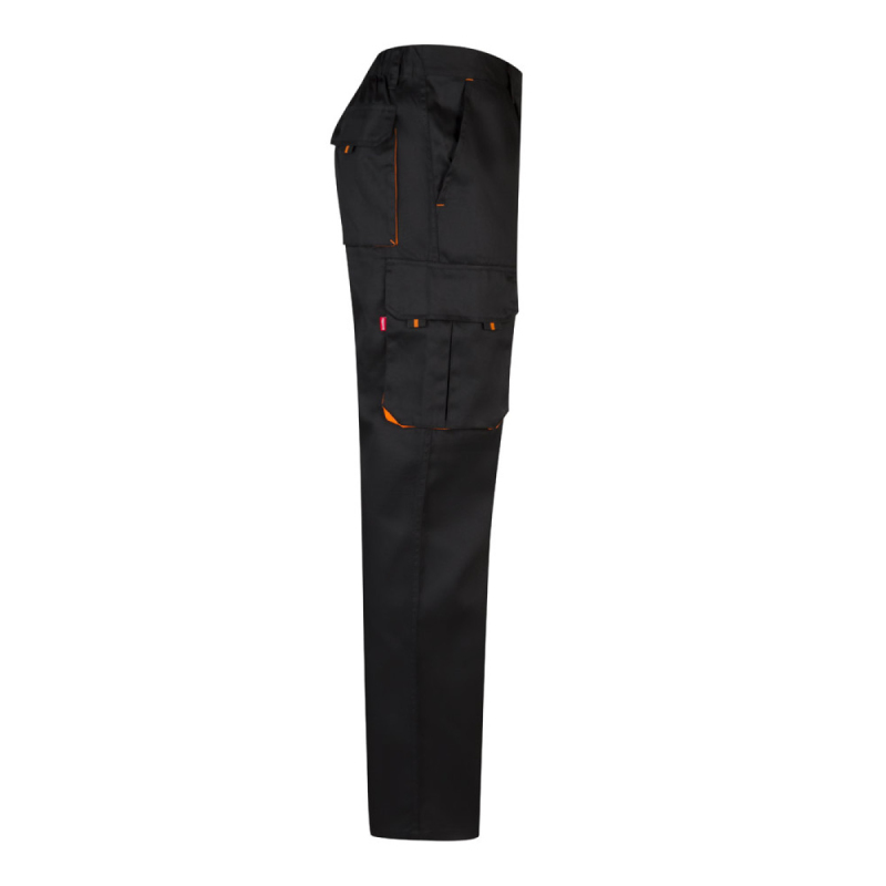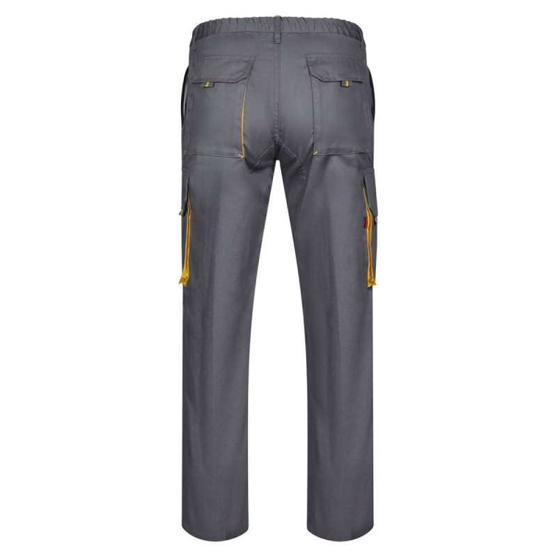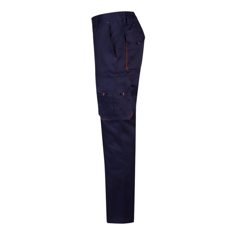 Dvoubarevné keprové kalhoty s mnoha kapsami (200 g/m²), z bavlny (35 %) a polyesteru (65 %). S elastickým pasem a kontrastní barvou na klínech, stahování a prošívání. Obsahuje šest kapes: (2 francouzské kapsy, 2 boční klínové kapsy a 2 zadní klínové kapsy). Velikost: 34, 36, 38, 40, 42, 44, 46, 48, 50, 52, 54, 56, 58, 60