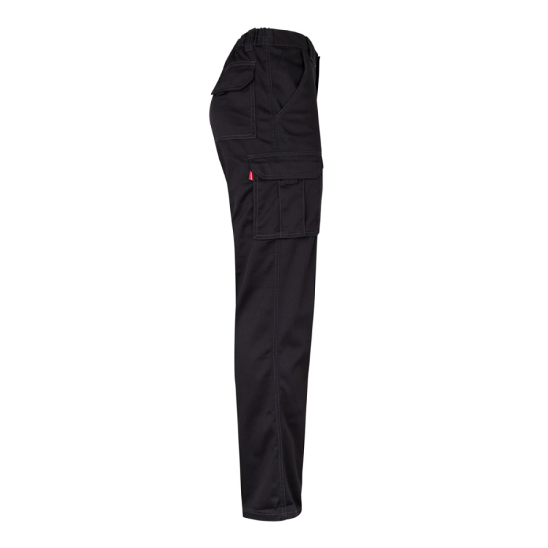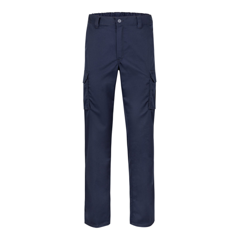 Strečové kalhoty s mnoha kapsami (290 g/m²), z bavlny (46 %), EME (38 %) a polyesteru (16 %). Úzký střih, elastický pas a šest kapes (2 francouzské kapsy, 2 boční klínové kapsy a 2 zadní klínové kapsy). Velikost: 34, 36, 38, 40, 42, 44, 46, 48, 50, 52, 54, 56, 58, 60