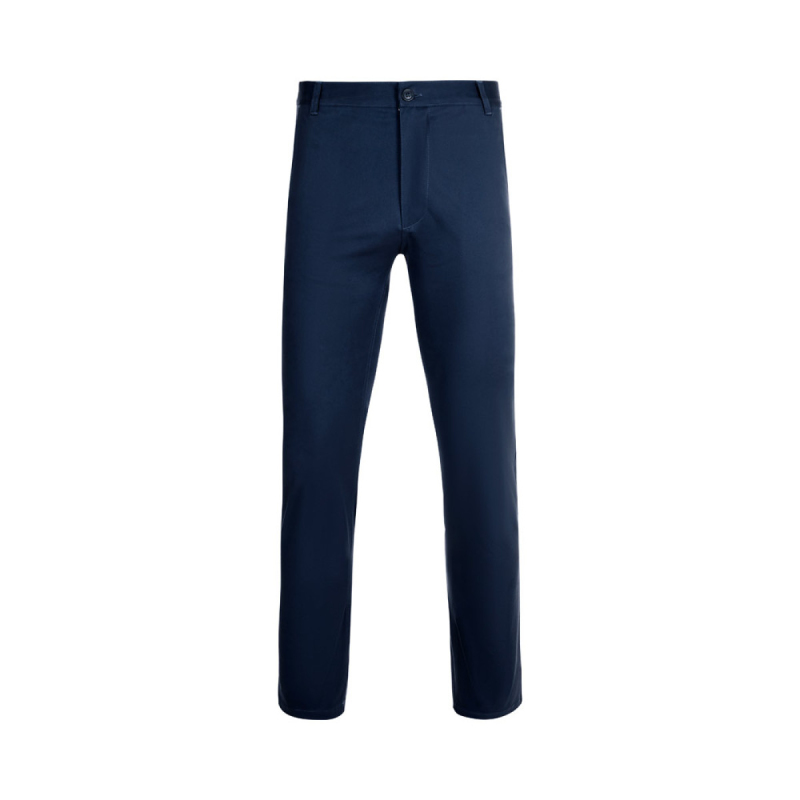 Unisex strečové chino kalhoty (260 g/m²), bavlna (98 %) a elastan (2 %). Obsahuje pět kapes (2 zadní kapsy na knoflíky, 2 francouzské kapsy, z toho jedna obsahuje malou kapsičku). Velikost: 34, 36, 38, 40, 42, 44, 46, 48, 50, 52, 54, 56