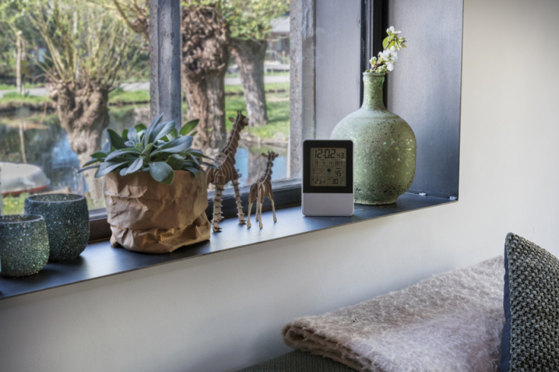 Vnitřní/venkovní meteostanice s LCD displejem a speciálním venkovním snímačem. Funkce: Datum a čas, vnitřní/venkovní teplota, předpověď počasí, vlhkost a budík.