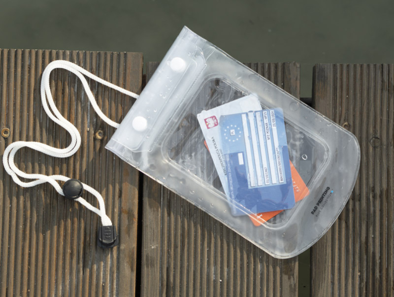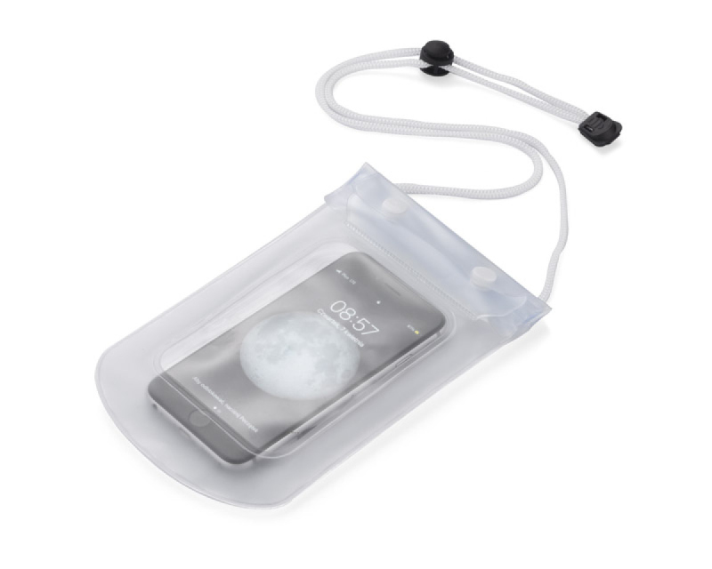Vodotěsné pouzdro FALLA slouží k bezpečnému uložení věcí a zabraňuje jejich namočení. Má průhledné okénko, které umožňuje používat telefon s dotykovým displejem, a také šňůrku, která umožňuje zavěšení pouzdra na krk.