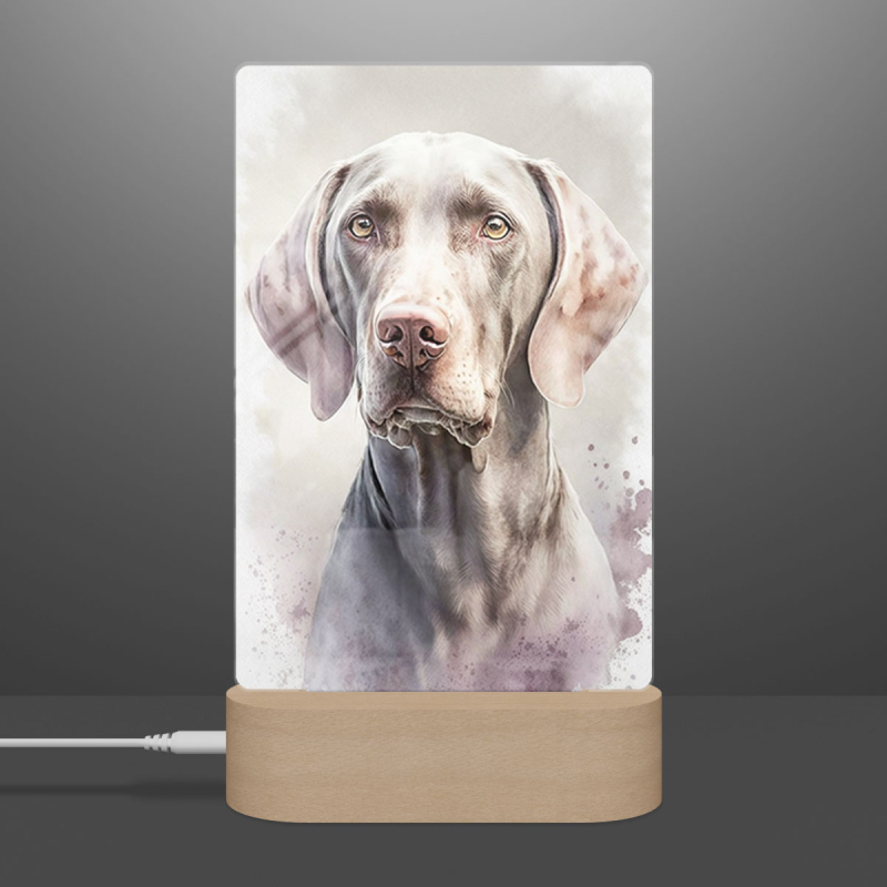 Součástí balení je akrylové sklo dle výběru, dřevěný RGB LED stojánek a napájecí USB kabel.