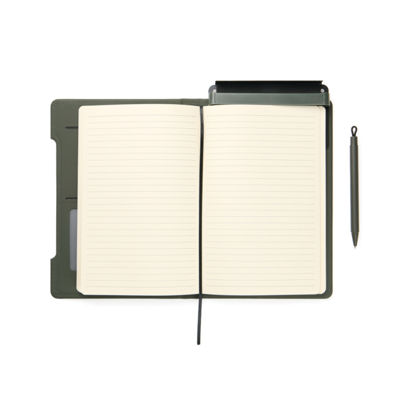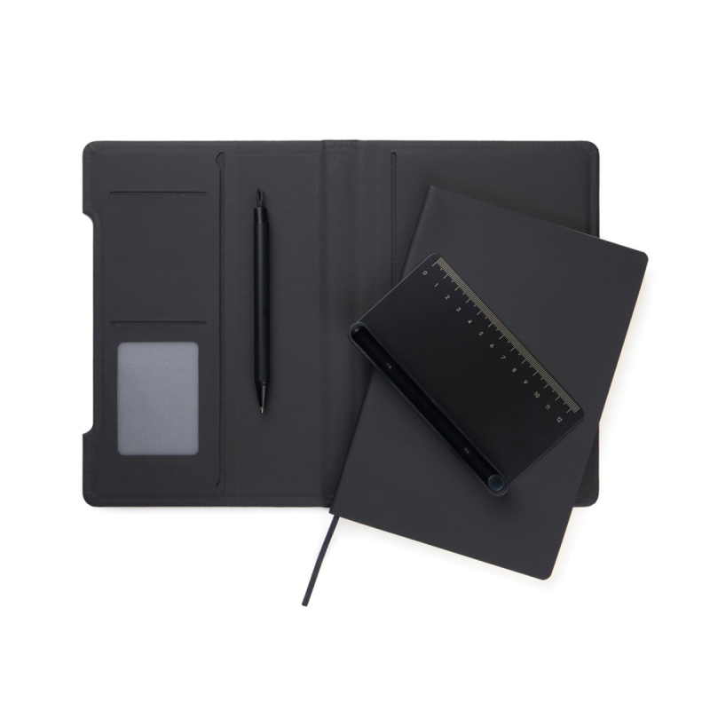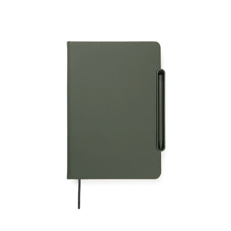 Multifunkční zápisník 4v1 kombinující praktičnost, flexibilitu a design. Vyroben z RCS certifikovaného recyklovaného papíru s obalem v klasickém matném PU povrchu Baltimore, což jej činí vizuálně atraktivním a zároveň funkčním. Magnetické pravítko slouží zároveň jako pravítko i držák na pero včetně pasujícího kuličkového pera s modrým inkoustem. Držák na pero se snadno transformuje na stojánek na telefon integrovaný do struktury zápisníku. Interiér obsahuje chlopně pro držení karet pro pohodlné uložení a snadno vyměnitelnou náplň zápisníku pro dlouhodobé používání. Zápisník obsahuje 80 listů / 160 linkovaných stránek, což poskytuje dostatek prostoru pro poznámky, plánování a nápady. Je to perfektní společník pro schůzky, cestování nebo každodenní organizaci. Celkový obsah recyklovaných materiálů: 70 % z celkové hmotnosti výrobku. Certifikováno organizací Control Union, CU1162221.