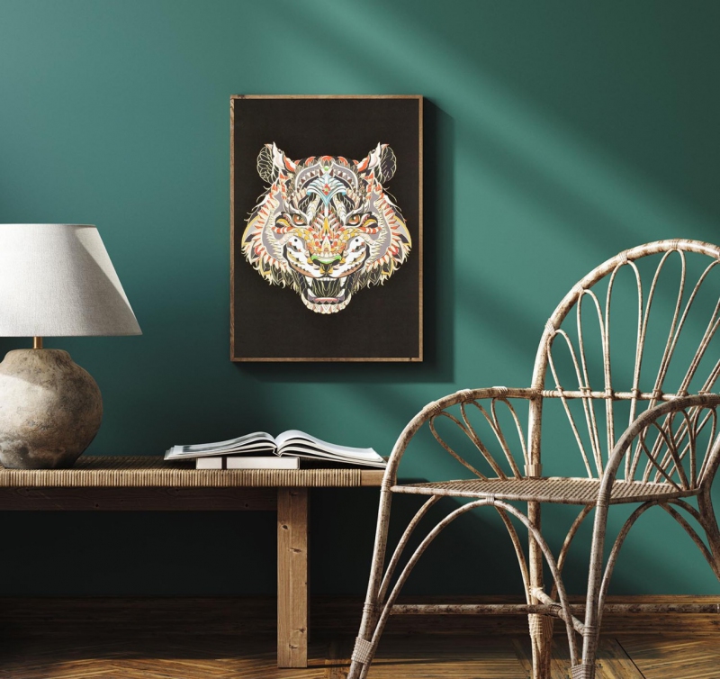 Vzorovaná Hlava Tygra 3D Zlatý Plakát