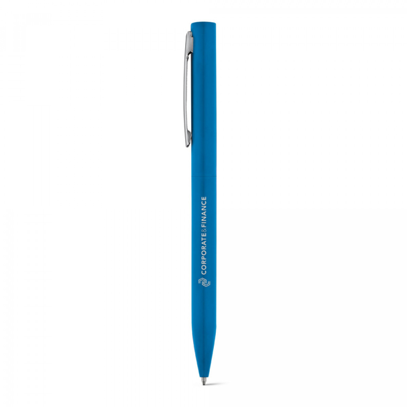 Hliníkové kuličkové pero s otočným mechanismem, železným klipem s lesklou chromovanou úpravou. Lakované tělo s lesklým povrchem a refil s metalickým modrým inkoustem od Dokumental®. Dodáváno v dárkové krabičce (rozložené). ø10 x 138 mm | Krabička: 150 x 15 x 19 mm