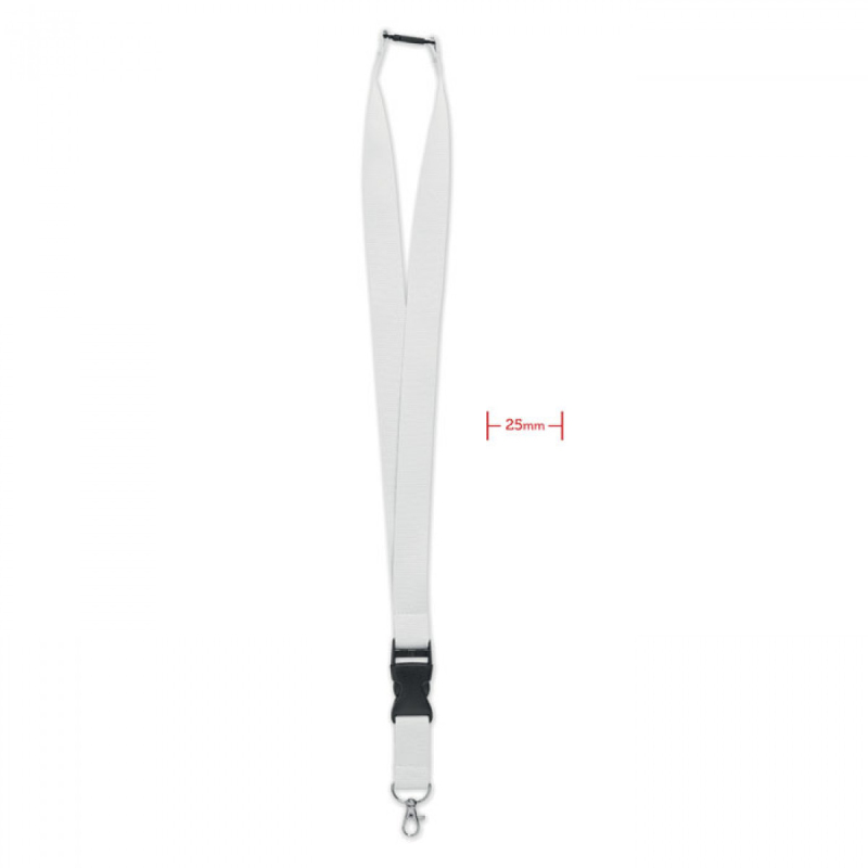 Klíčenka s karabinkou, přeskou a bezpečnostní pojistkou. Šířka 25mm. Sublimační tisk je možný pouze na bílý product.