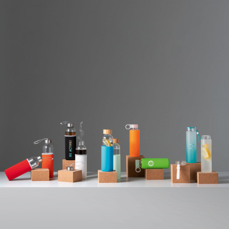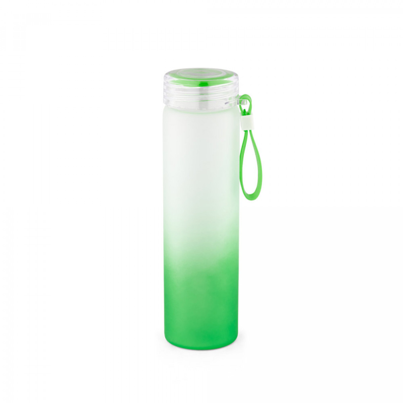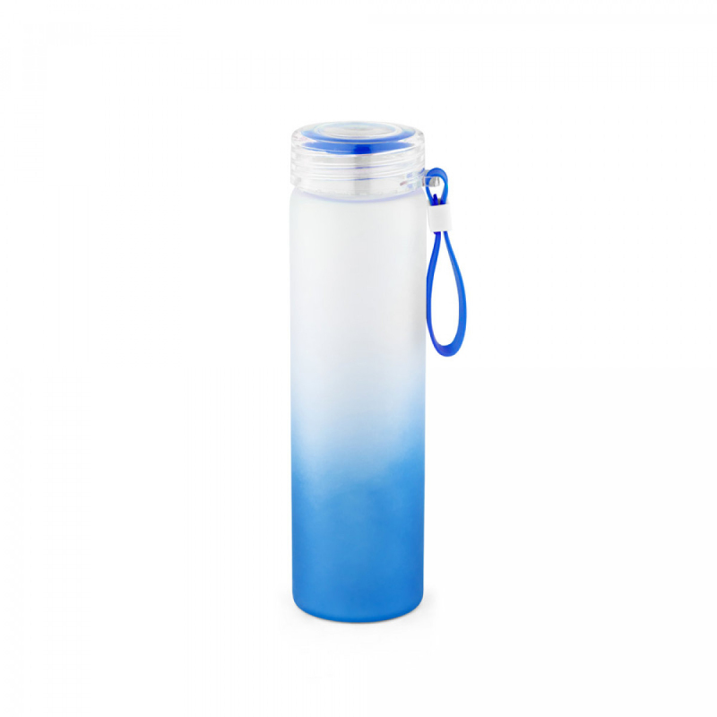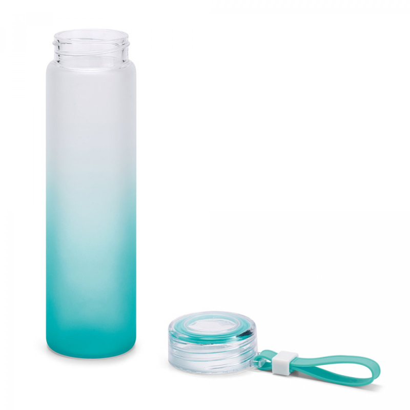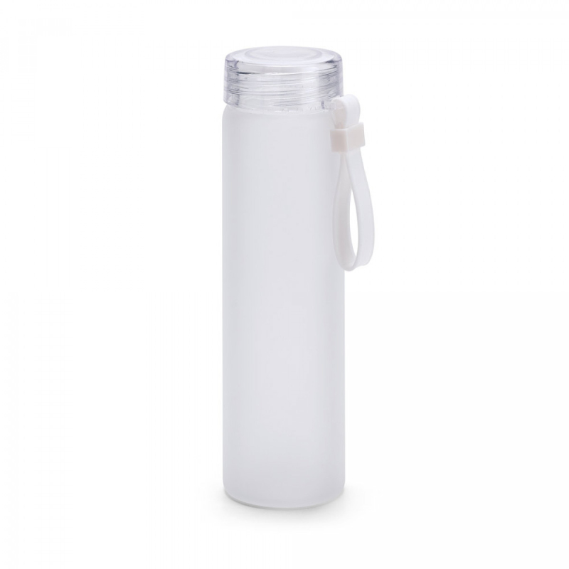 Borosilikátová skleněná lahev se slámkou z PP. Lahev má matný povrch a silikonové madlo na uzávěru. Kapacita až 470 ml. Dodáváno v krabičce z kartonu. ø60 x 210 mm