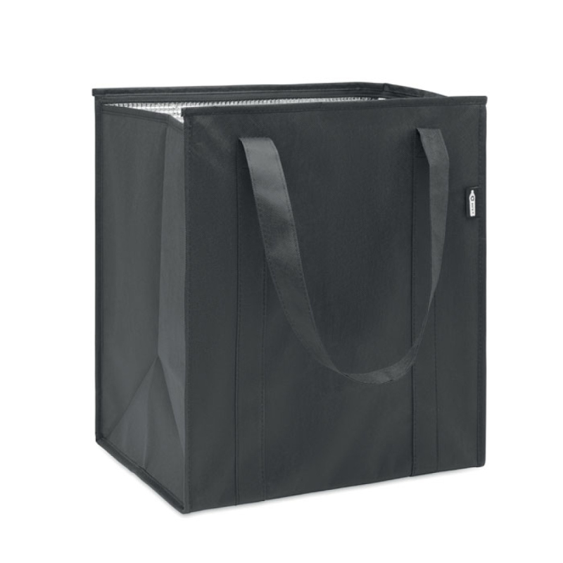 Chladící taška z netkané RPET textilie 80 g/m². Izolační materiál: hliníková fólie. Objem 25 l. Hlavní přihrádka se zipem a vyjímatelnou výztuhou z PP kartonu.