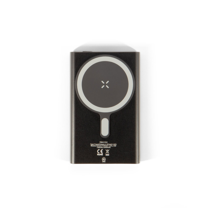Magnetická powerbanka s extrémně rychlým nabíjením a 4 LED diodami, které indikují stav baterie. Místo pro bezdrátové nabíjení má vyvýšenou magnetickou plochu, která se přizpůsobí většině smartphonů. Protože je výrobek vyroben z přírodních materiálů, barva a velikost výrobku a výsledek tisku se mohou u jednotlivých výrobků lišit.Materiál: ABS (7 % recyklovaný), hliník (21 % recyklovaný)Kapacita: 10 000 mAhVýkon bezdrátového nabíjení: 15 WVstup: USB-C (18 W)Výstup: USB-C (PD 20 W)Obsahuje: Extra magnetický úchyt, kabel USB-C/USB-C s adaptérem USB-AVlastnosti: Umožňuje nabíjet 2 zařízení současněKompatibilita: iPhone 12 a vyšší, zařízení s magnetickou technologií (např. Magsafe nebo s magnetickým úchytem)Balení: Dárková krabička z recyklovaného kraftového papíru 106 x 67 x 19 mm