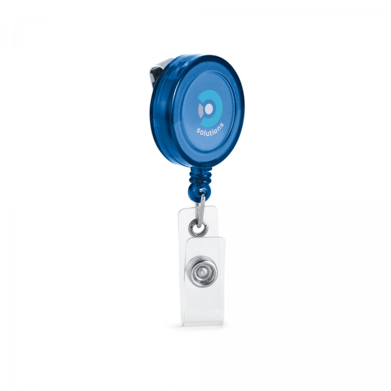 Držák na jmenovku s kovovým klipem, prodlužitelný až na 900 mm. S průhledným klipem a knoflíkem na přidání visačky. Zatahovací mechanismus umožňuje zobrazení karet bezpečným a pohodlným způsobem. ø32 x 7 mm