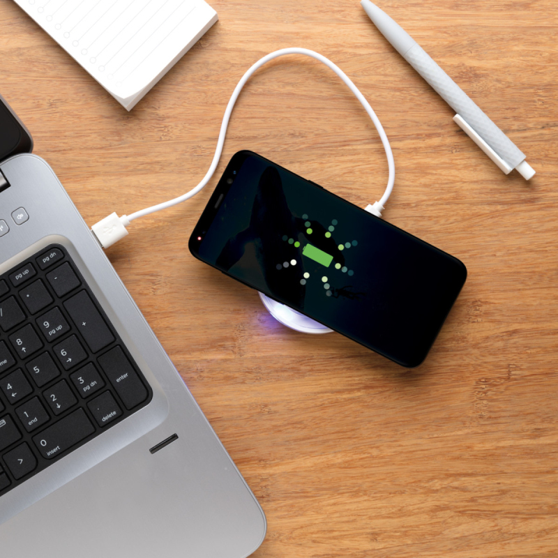Bezdrátová nabíječka pro nabíjení všech vašich zařízení podporující QI. Silikonový kroužek zabraňující sklouznutí telefonu. LED indikátor značící aktivní bezdrátové nabíjení. Kompatibilní s nejnovější Android generací, dále s iPhone 8 a výše. Vstup: 5V/1,5A. Bezdrátový výstup: 5V/1A, 5W.