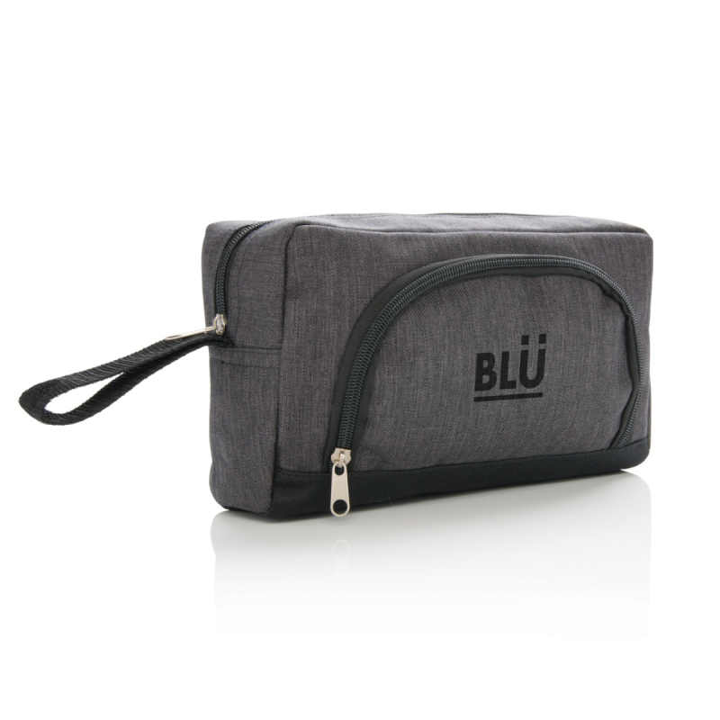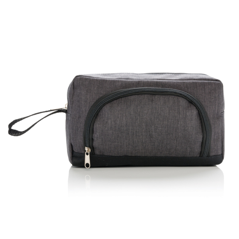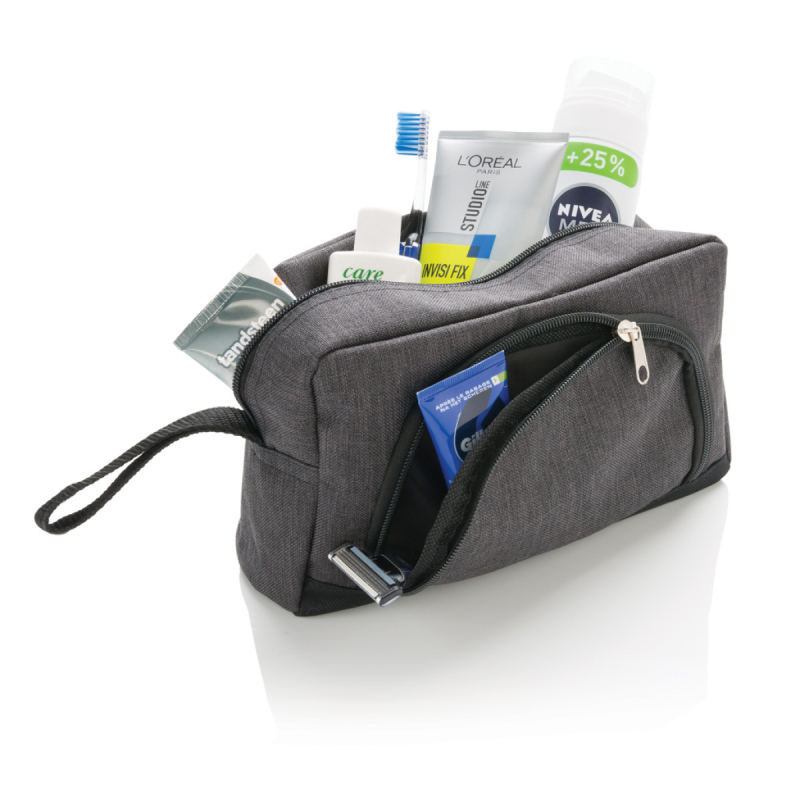 Dvoutónová toaletní taštička z 600D polyesteru s dostatkem místa pro všechny vaše kosmetické potřeby. Bez PVC.