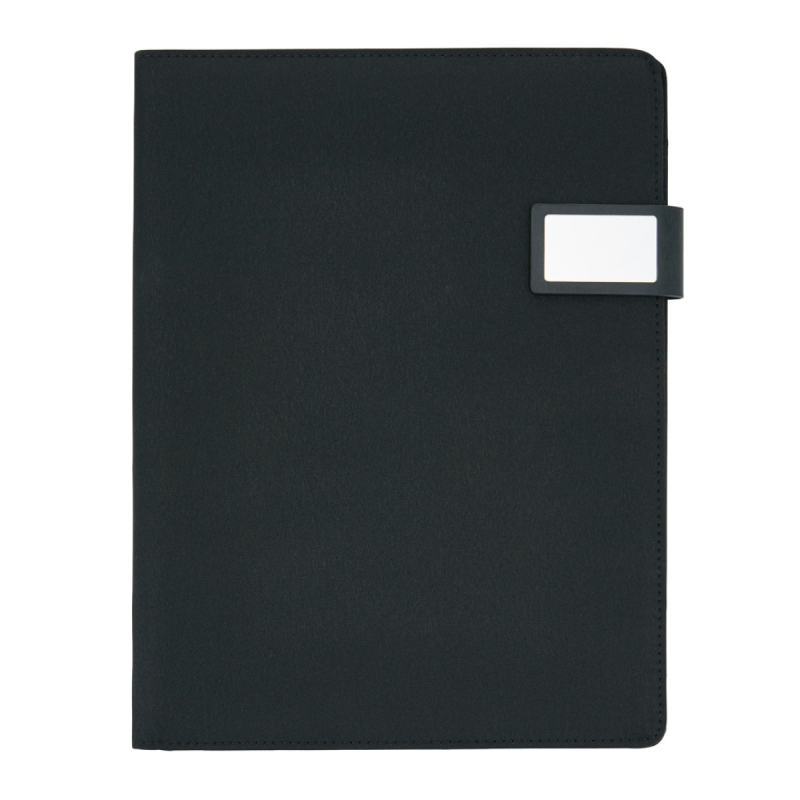Technické desky A4 s luxusním magnetickým kovovým zavíráním. Uvnitř: stojan na tablet/telefon, držák telefonu s průhledem, pomocí kterého lze zařízení zkontrolovat a ovládat. Vhodné pro většinu běžných telefonů, jako je například iPhone 6 nebo Samsung S6. S pouzdrem na dokumenty, 2 pouzdra na vizitky a očkem na pero. Včetně poznámkového bloku A4 z recyklovaného papíru.