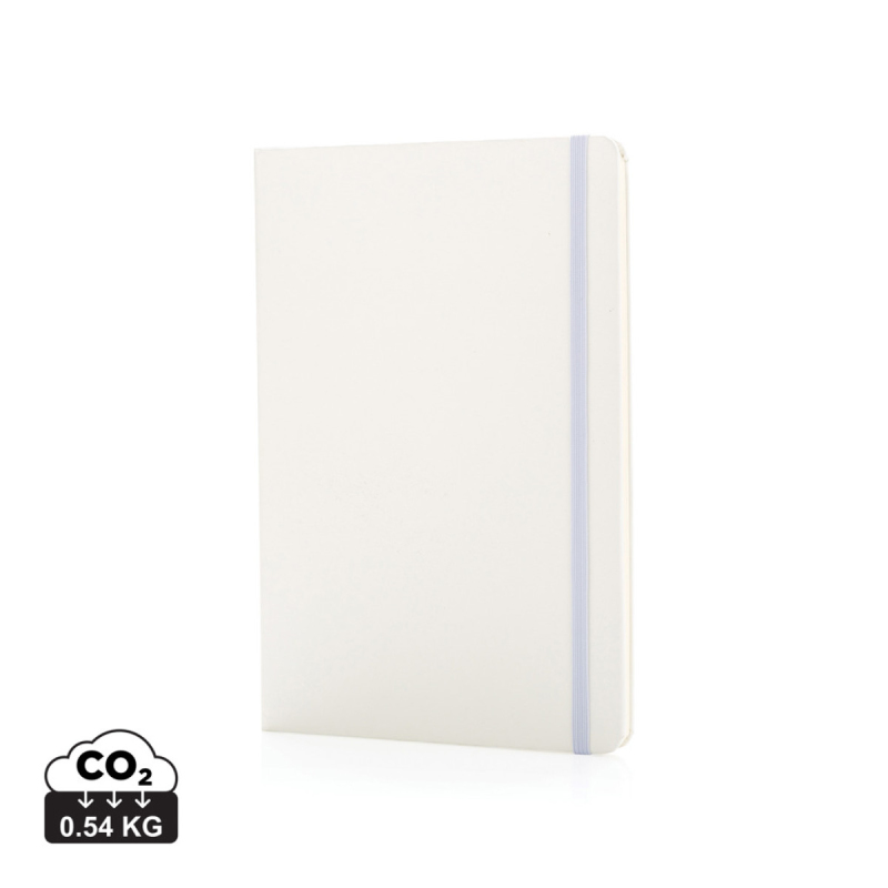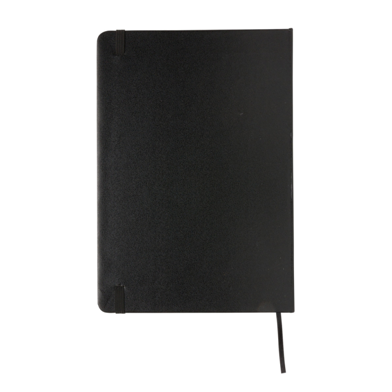 Základní poznámkový blok A5 s pevnými deskami, bez linek, s elastickým zavíráním a záložkou ze stuhy. 144 listů papíru s gramáží 70 g/m2. Krémové stránky. Ideální na kreslení, zápisky a poznámky.