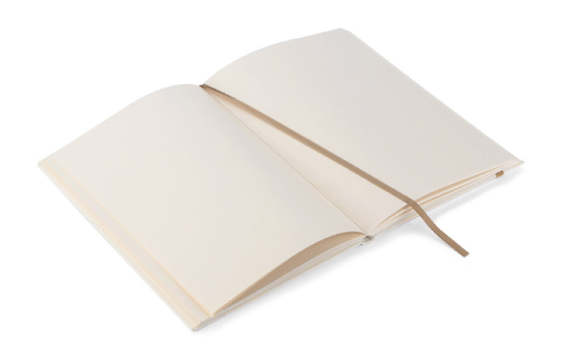 Desky a listy psacího bloku byly vyrobeny z krabic na mléko. Deska se uzavírá pomocí pružné gumičky. Uvnitř je stuha, která má funkci záložky. Formát A5, 80 neřádkovaných listů.