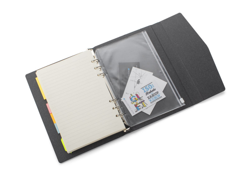 Pomocník NOTI obsahuje 60 linkovaných listů s možností jejich výměny. Díky tomu bude produkt sloužit po dlouhou dobu. Uvnitř jsou barevné lepicí poznámky a průhledná kapsa uzavřená zipem pro uložení kancelářských potřeb, vizitek nebo například ochranné masky. Obal je uzavřeny magnetem z papíru.