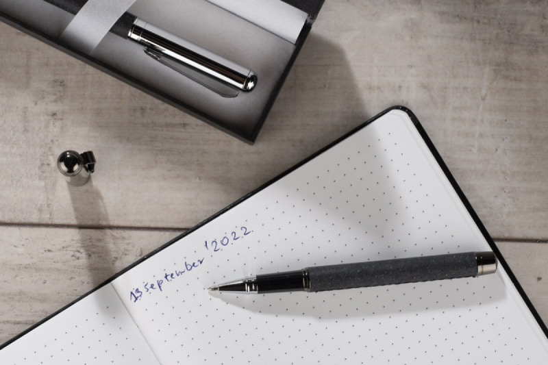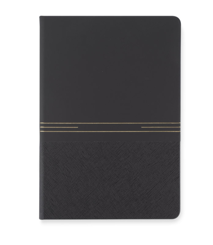 Elegantní poznámkový blok ve tvrdých deskách se zlatavým zdobením. Listy psacího bloku byly vyrobeny z kamenného papíru. Takový papír je výjimečně odolný proti rozedření a vlhku. Obsahuje 80 tečkovaných listů. Formát A5.