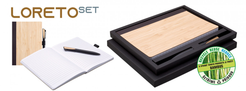zápisník s propiskou v krabičce LORETO