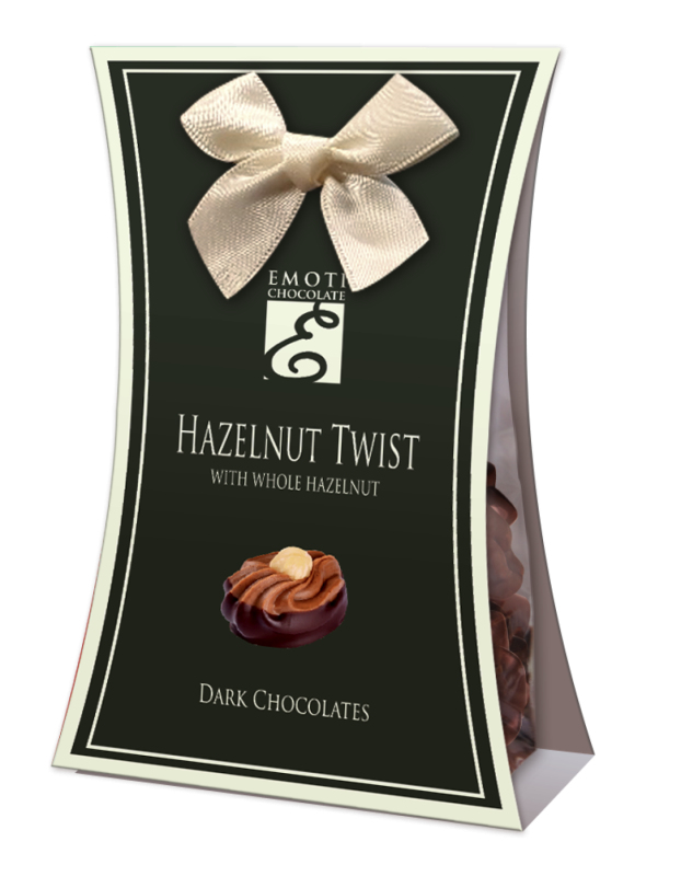 Belgické pralinky z hořké čokolády s oříškovu náplní a křupavými čokoládovými kuličkami 75 g. Trvanlivost: 12 měsíců.