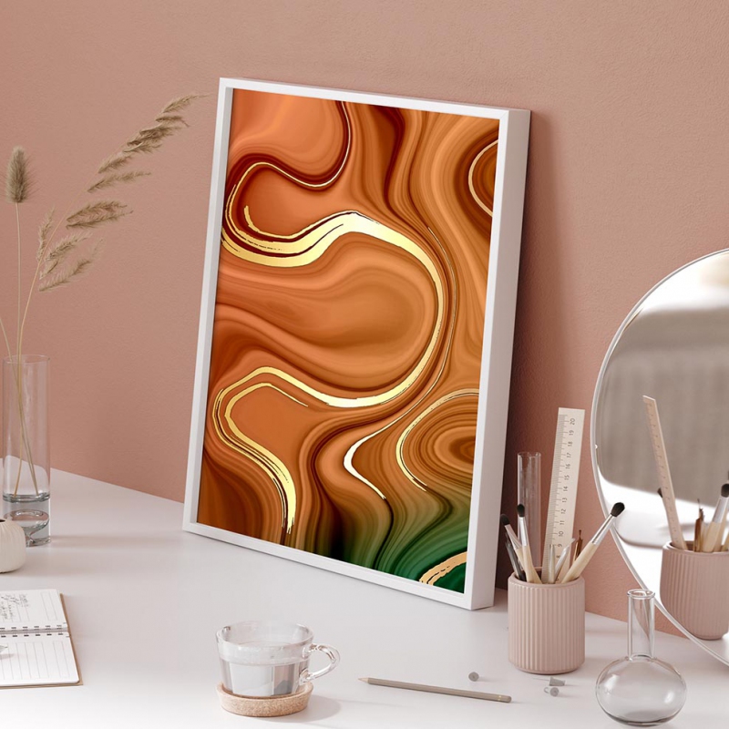 Živý abstraktní mramorový achát 3D Zlatý Plakát