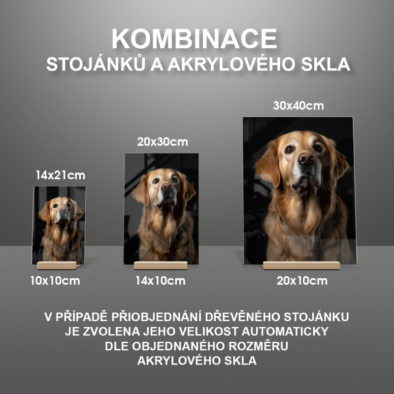 V případě přiobjednání dřevěného stojánku je zvolena jeho velikost automaticky dle objednaného rozměru akrylového skla viz produktové foto.