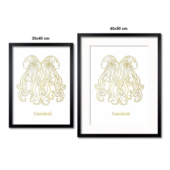 Znamení zvěrokruhu Blíženci bílá 3D Zlatý Plakát