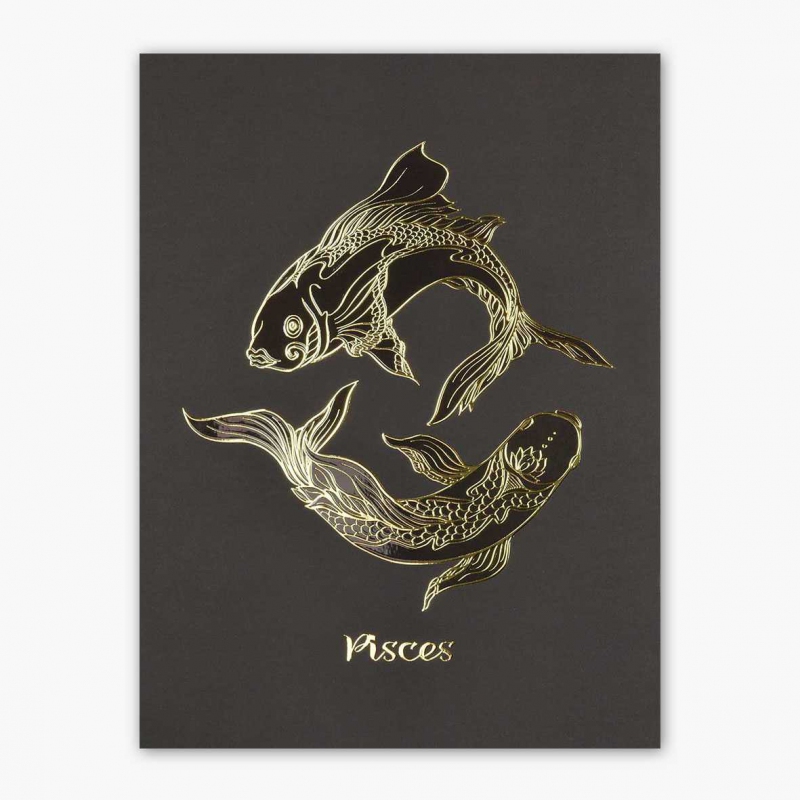 Znamení zvěrokruhu Ryby 3D Zlatý Plakát